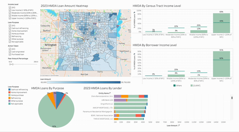 HMDA data reimagined. Explore income levels, loan purposes, and peer comparisons—all in one view, all on one map.